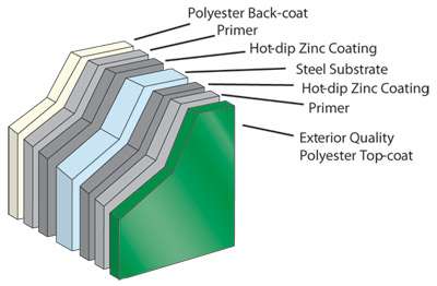 - 350grms per m2 Hi-Zinc coating (scratch resistant and provides 8 layers of advanced protective