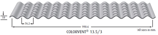 Colorgalv®is our low cost roofing and cladding product for low-humidity farm buildings used for non-animal applications such as general storage, grain storage etc. Colorgalv® is protected by a zinc coating, a double layer of primer plus polyester coatings and is offered in two profiles and three colours. Colorvent® vented sheeting is also available.